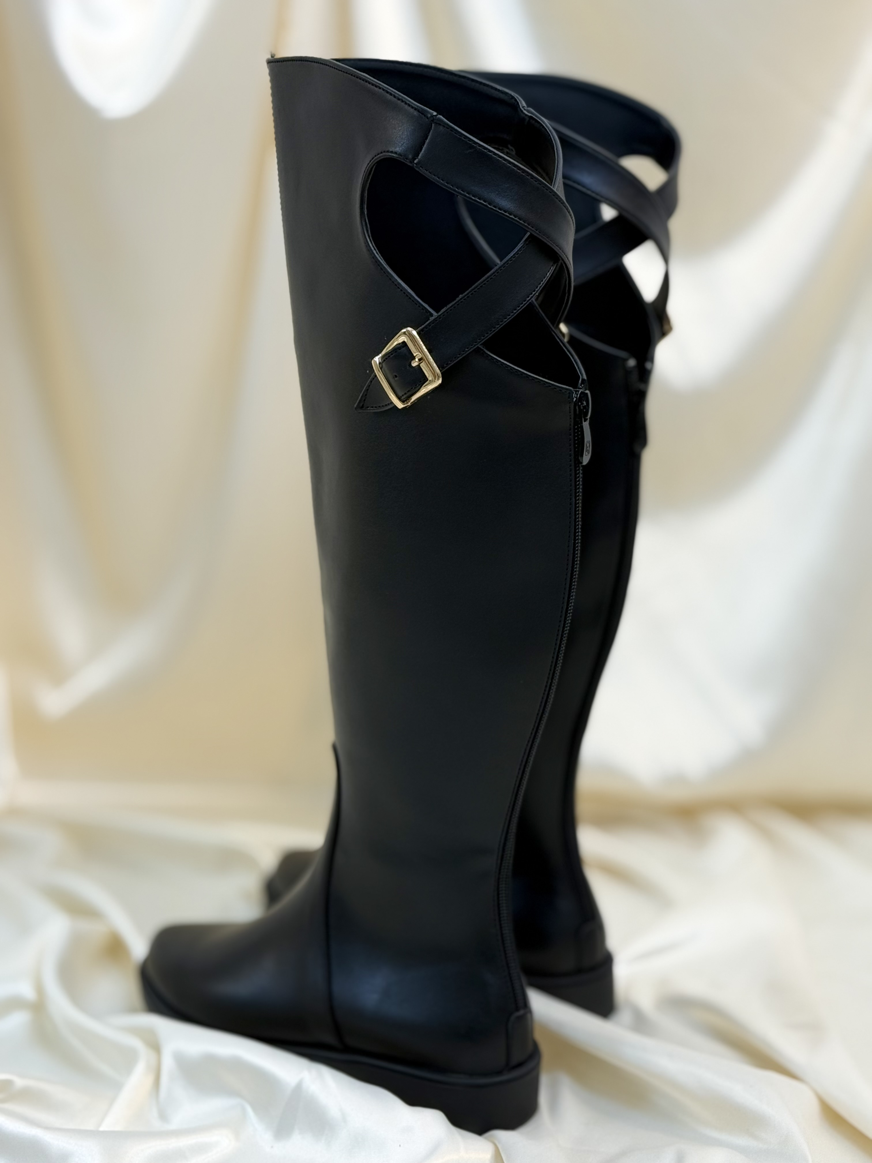 بوت بلند زنانه پشت بند دار چرم مشکی