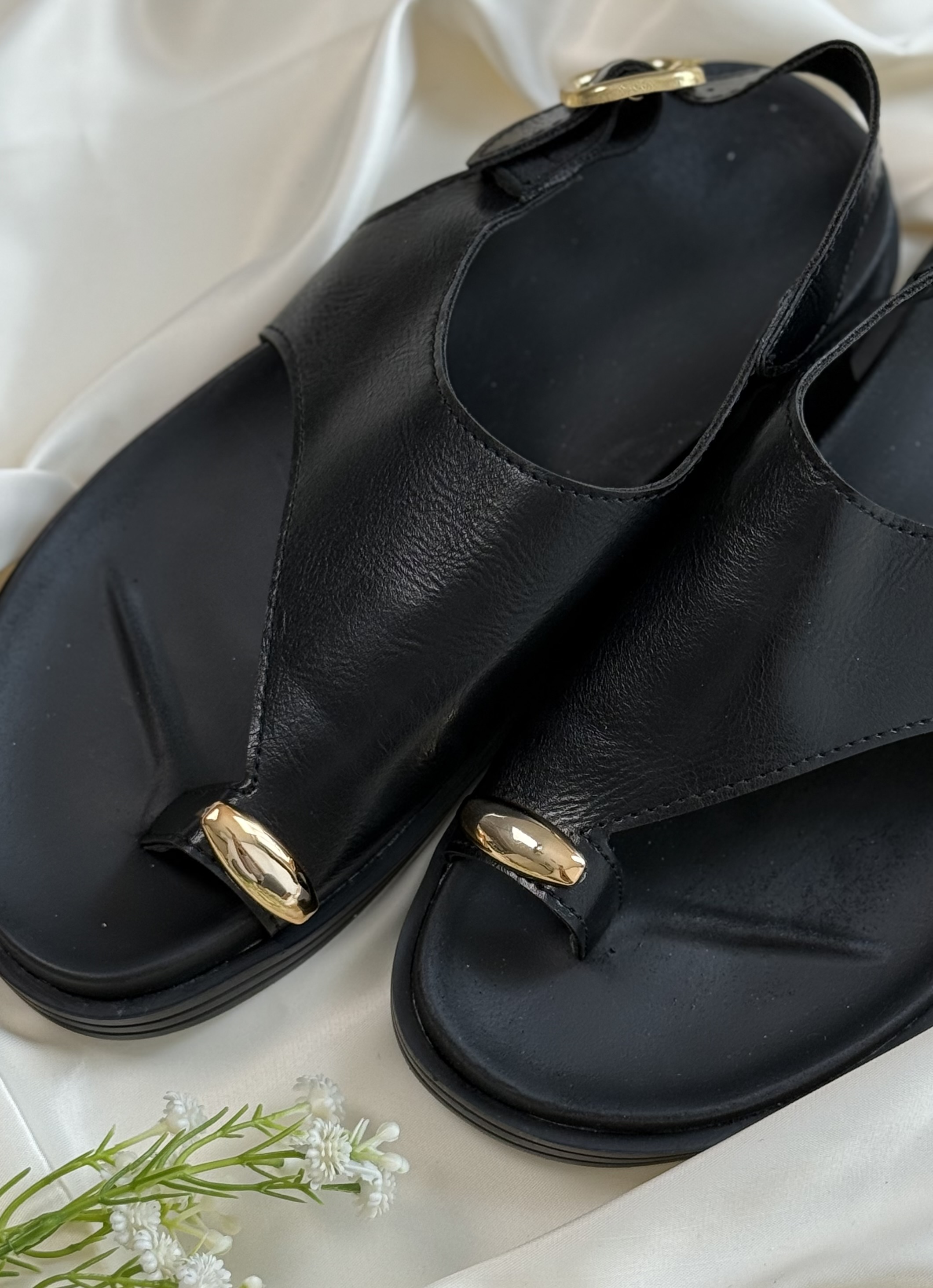 پشت سگک یه کش دوخته شده که راحت پوشیده میشه جنس رویه چرمه کفی کفش نرم و راحته و اصلا پاتو اذیت نمیکنه