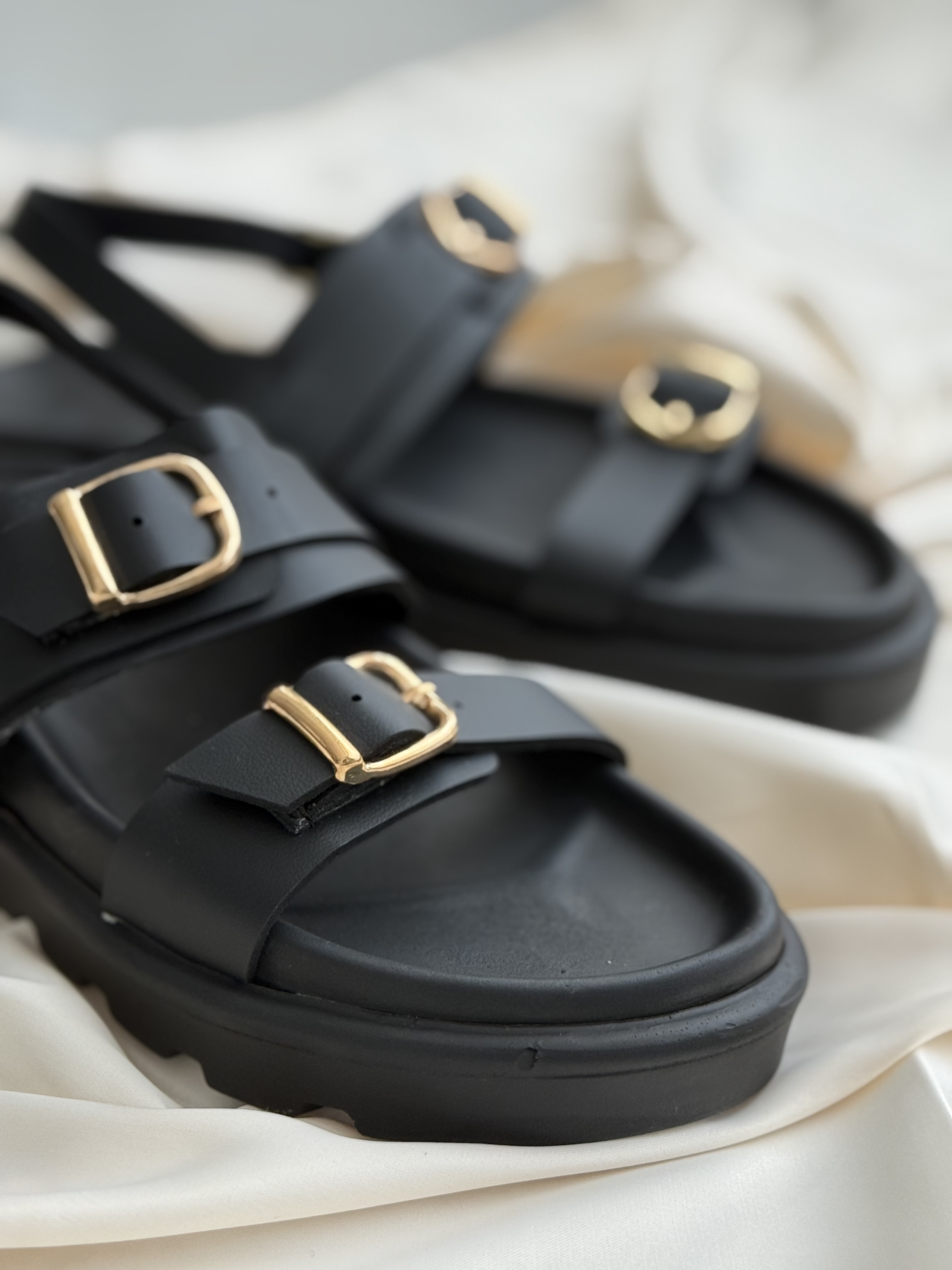 با این صندل توی مهمونی ها بدرخش پشت بند دار هست و زیر سگک بندش کش خورده که راحت بپوشیش جنس رویه چرم هست با کفی خارجی