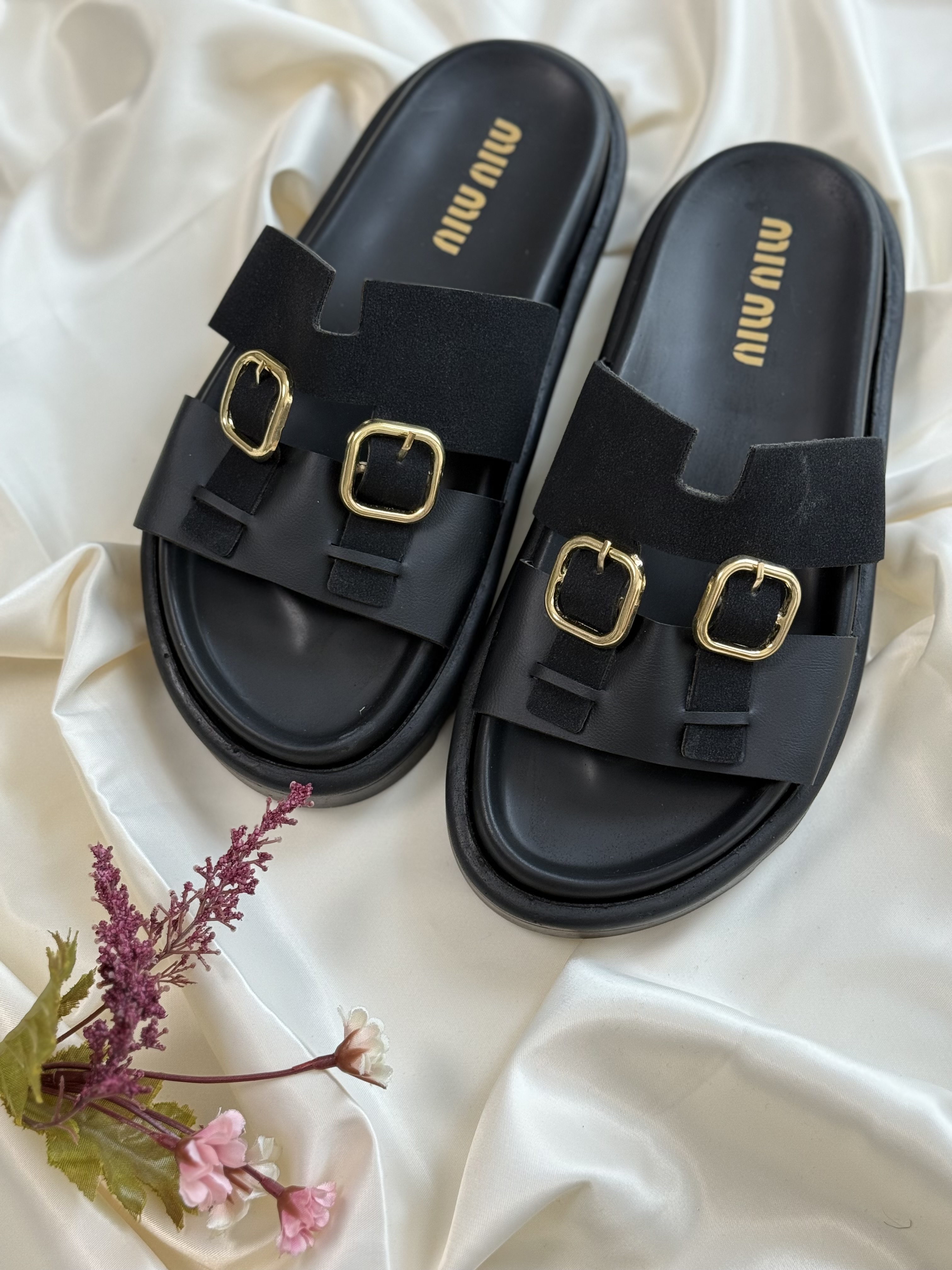 صندل زنانه میو میو مدل رویه چرمی کمربندی