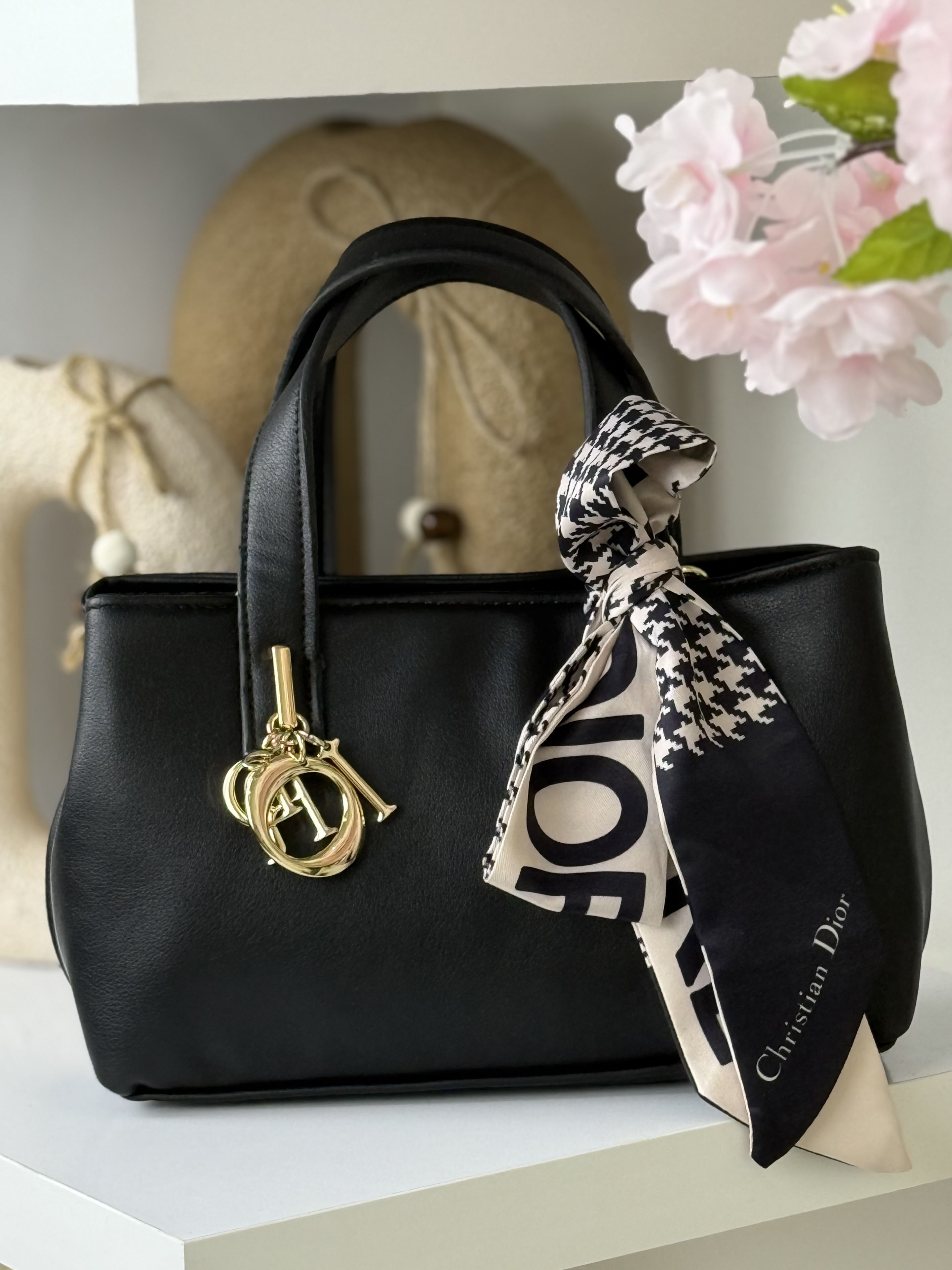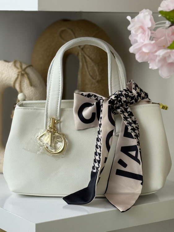 جنس یراق درجه یک رنگ ثابت یک بند بلند پارچه ای حک برند دیور داره و داخل کیف یه جیب کوچیک چرم رنگ خودش داره برای جای کارت