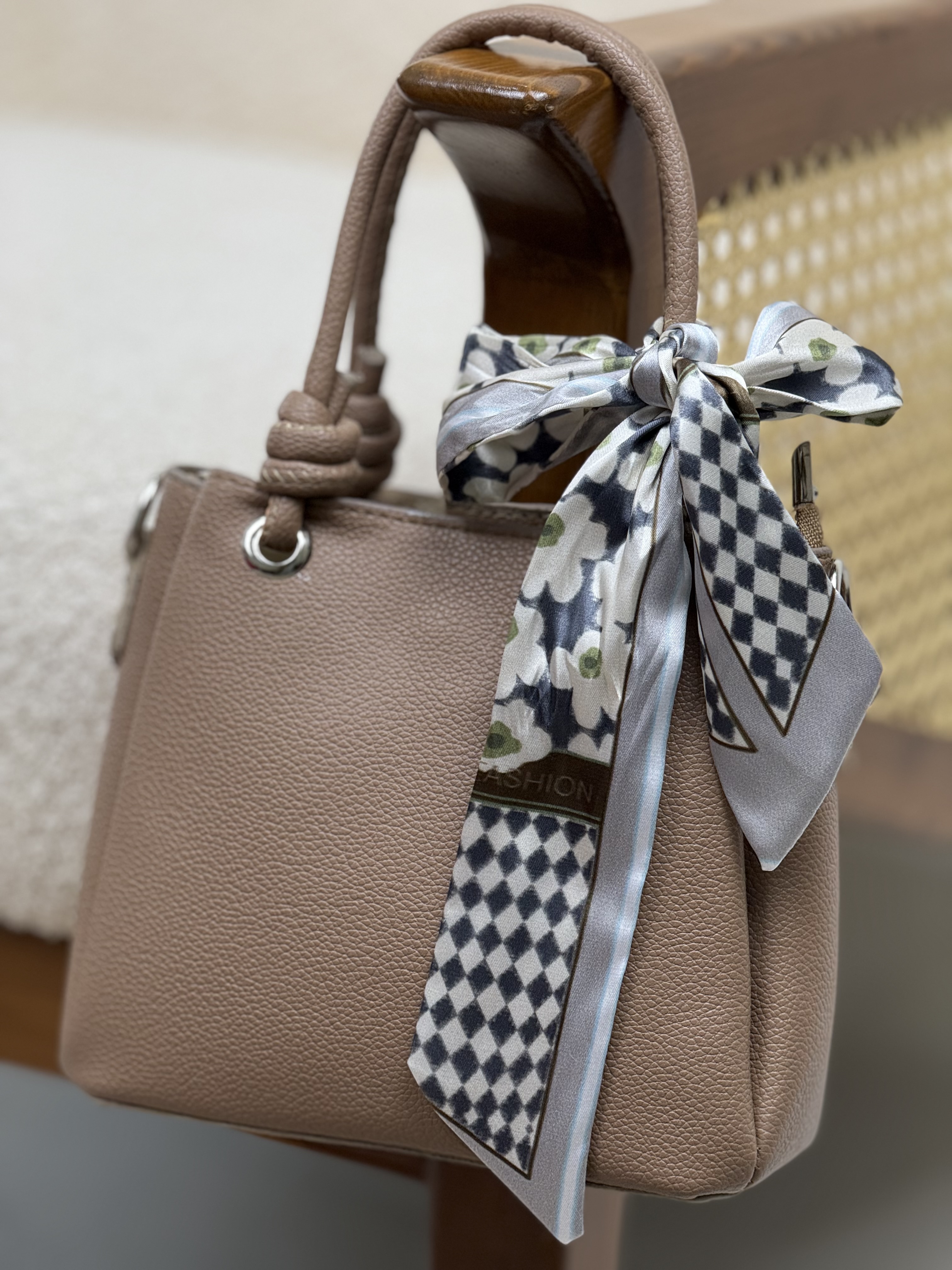اسکارفش رو به سلیقه خودت میتونی پاپیون بزنی یا دور دسته اش بپیچی