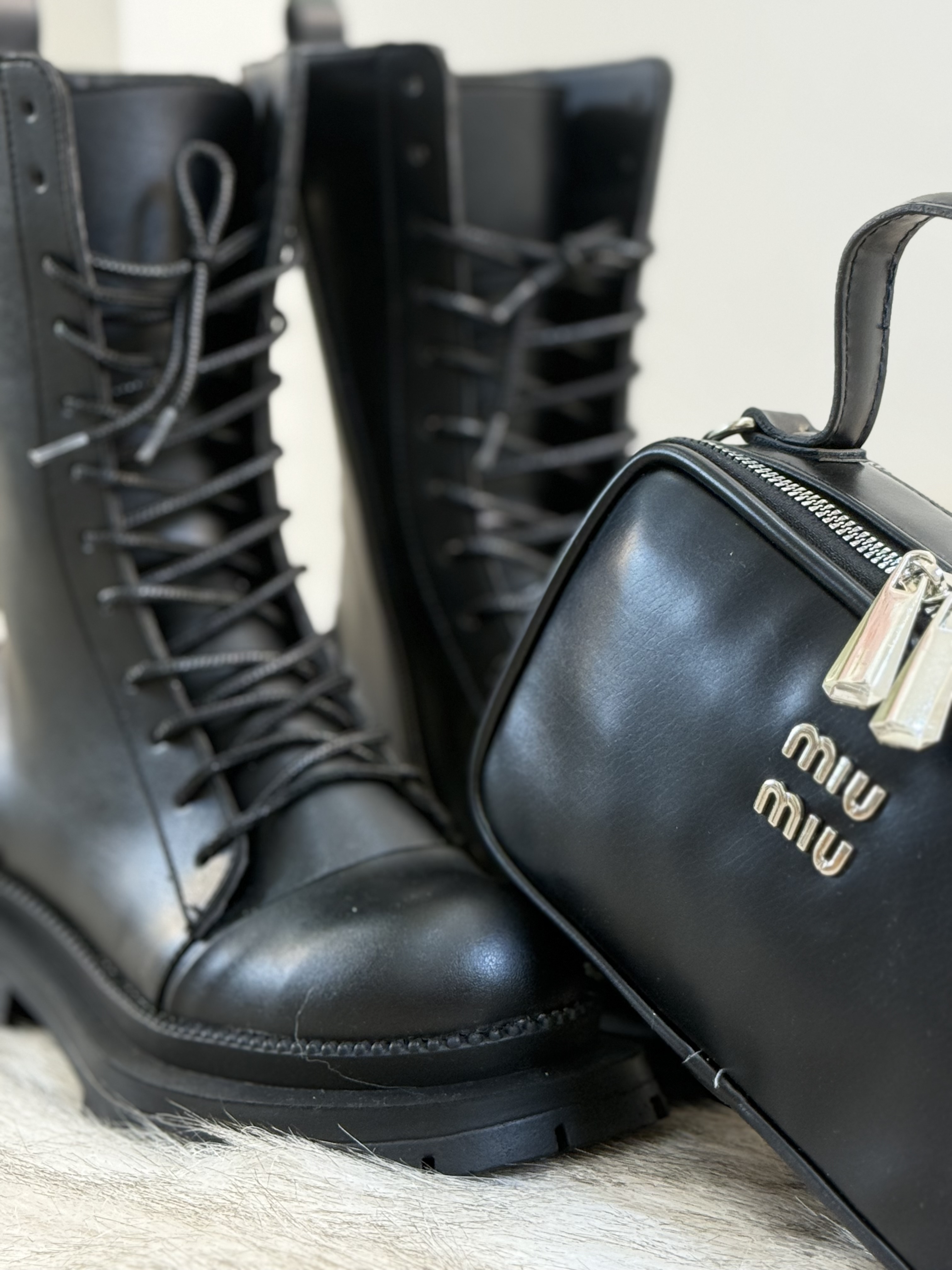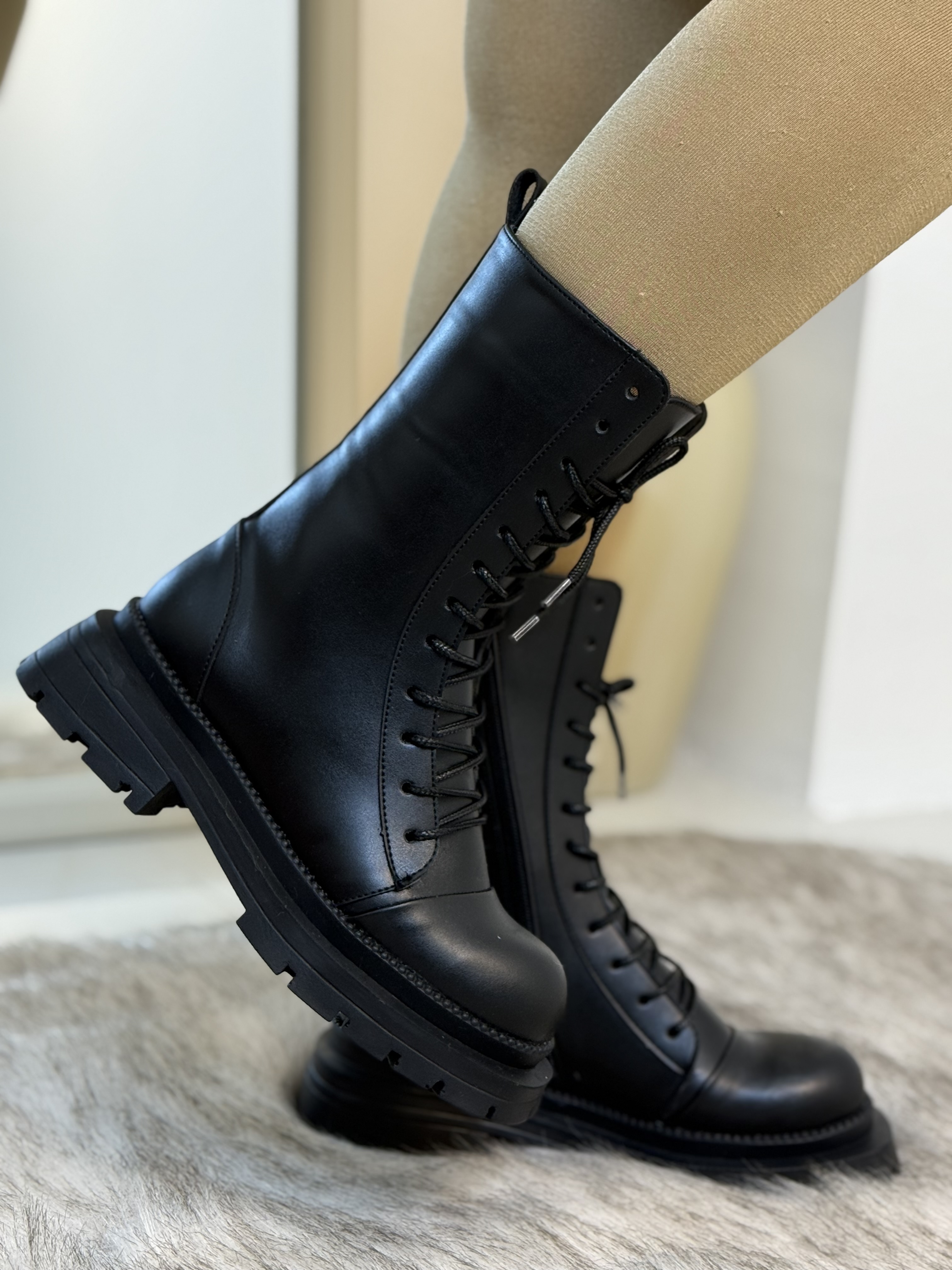 یه نیم بوت خوشگل بندی با جنس چرم مشکی و کیفیت عالی