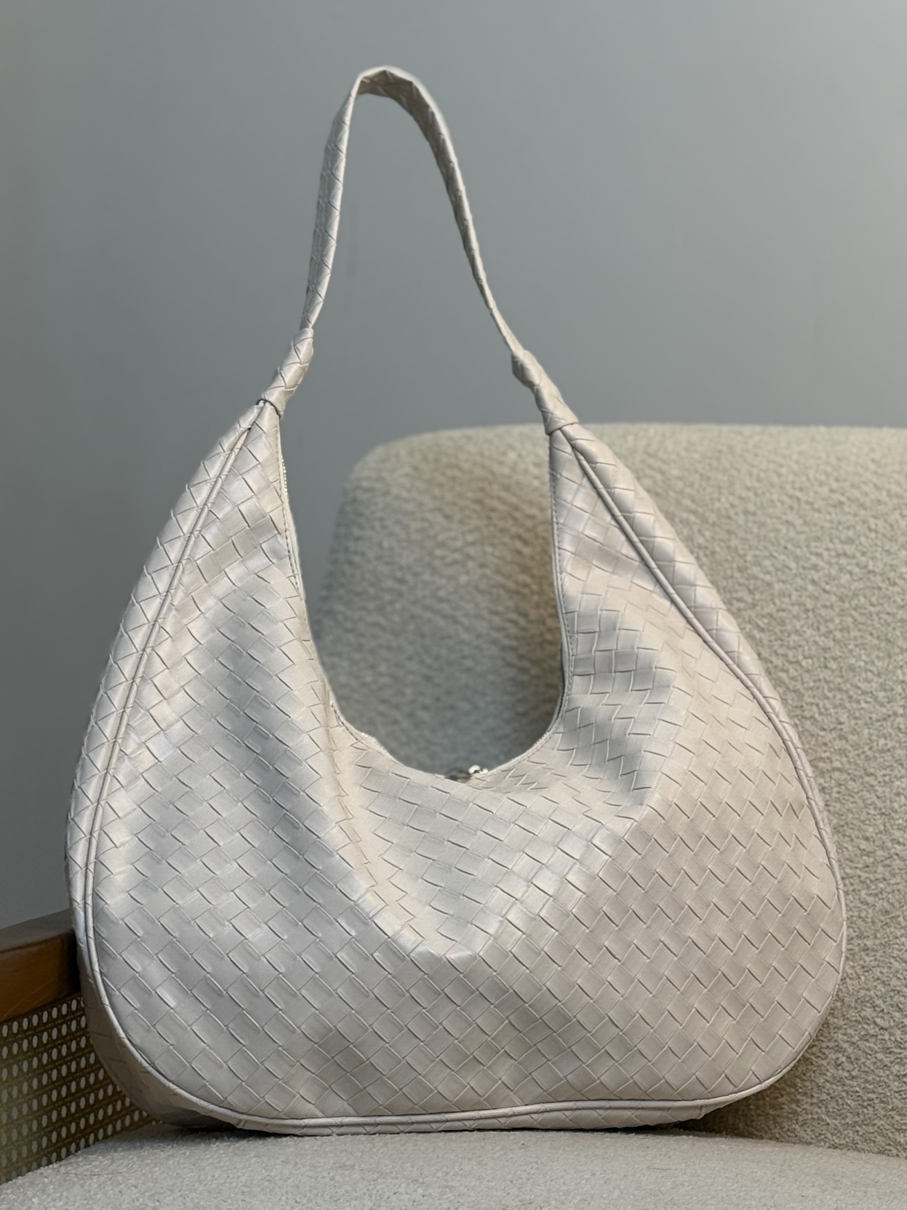 یه کیف زیبا و ترند که خیلی راحت روی شونه میوفته جون میده برای استایلای پاییزی فوقالعاده شیک و خاص از برند بوتگا دو زیپ هست و ابعاد تقریبی اش ۴۵ در ۳۵ سانتی متر