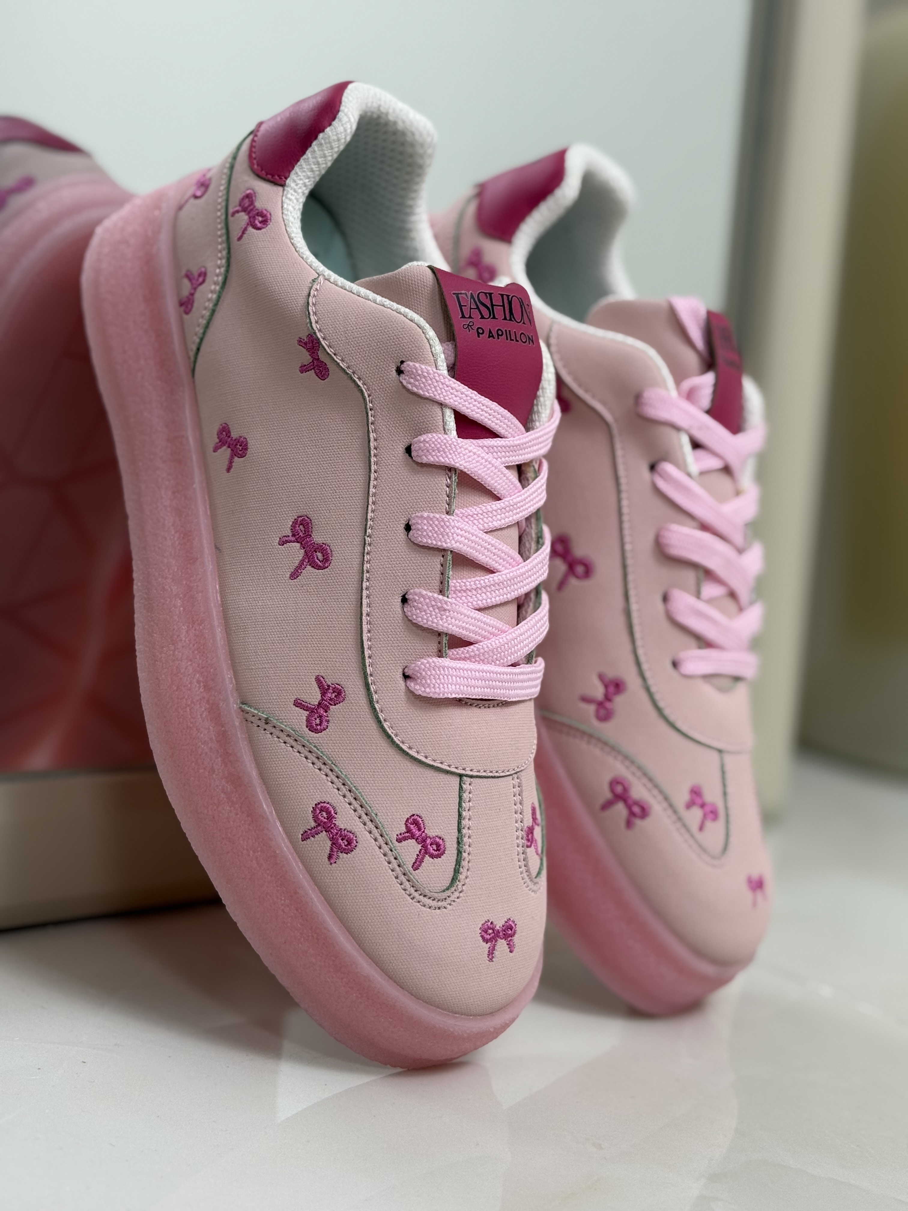 پاپیون های روی کفش گلدوزی شده ان